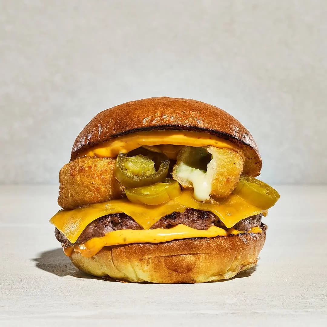 The Chili Cheese Burger from🔥Flamme Burger🔥 130g beef burger with cheddar, spicy cheddar sauce, jalapeno, chili cheese poppers.